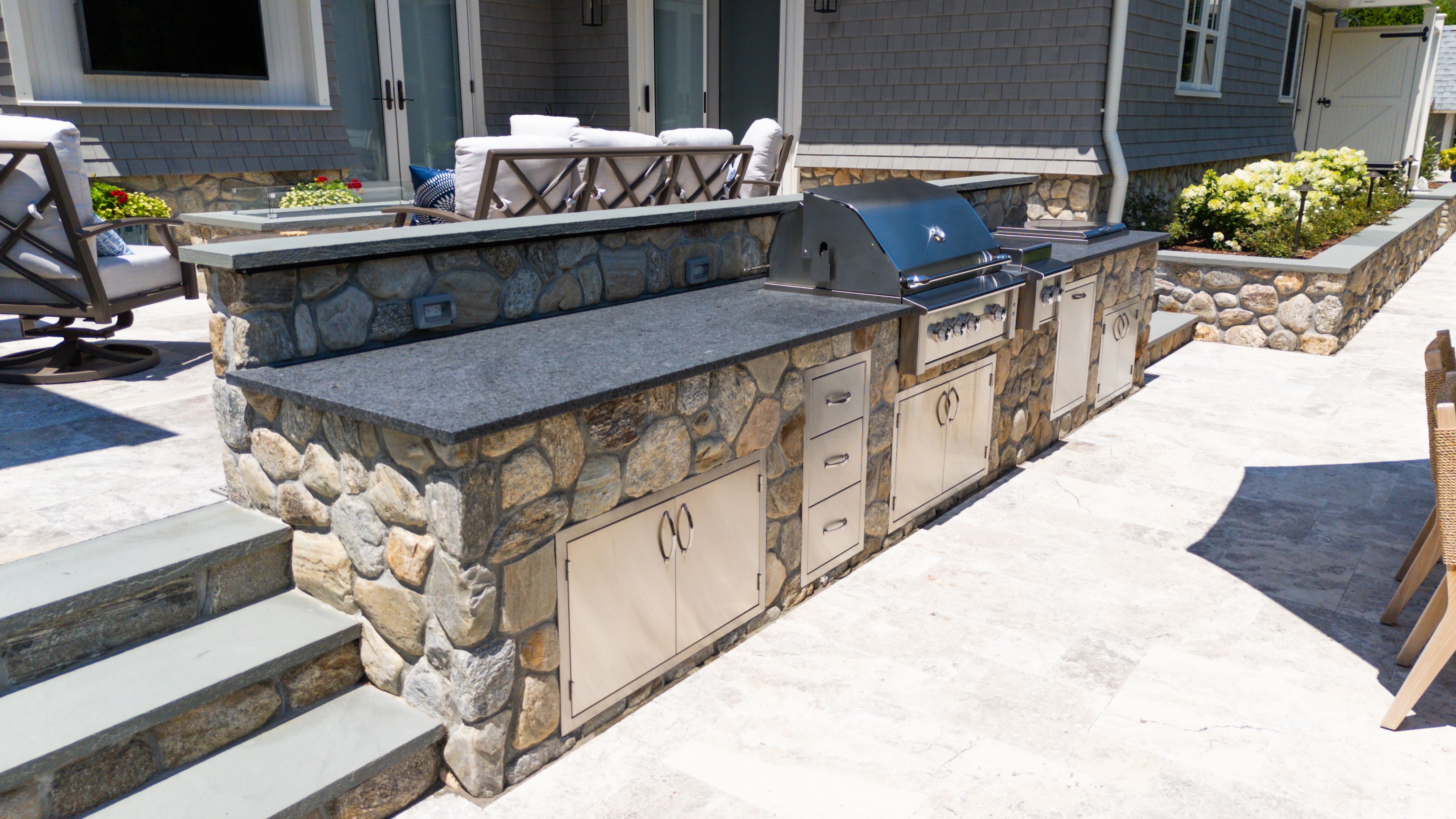 TSG Short-Story: We helped one shoreline client create a sleek, low-maintenance setup using native stone and stainless elements. Years later, it still looks showroom-worthy.